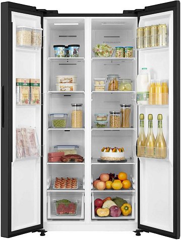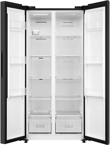 Korting KNFS 83177 N — стильная современная модель сайд-бай-сайд черного цвета, в которой два отделения расположены бок о бок друг с другом. Благодаря системе NoFrost, весь конденсат выводится наружу, не оседая на стенках в виде инея. Это избавляет вас от необходимости удалять лёд и иней. Общий объем оборудования составляет 442 литра, из которых 266 — это объем холодильной камеры, а 176 — морозильной, что позволит Вам хранить в нем большое количество продуктов.